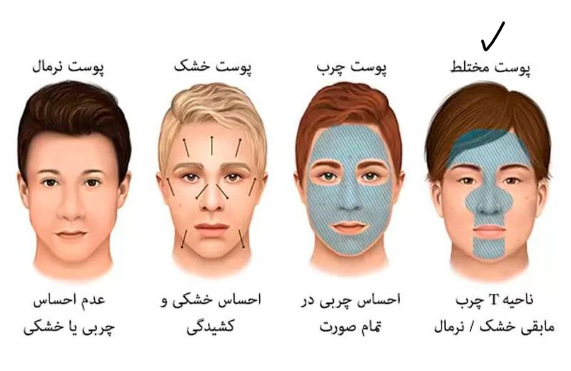 اگر بعد از یک ساعت، چربی روی ناحیه تی شکل صورت ایجاد نشود و در روی گونه‌ها احساس سفتی و خارش داشته باشید، شما دارای پوست خشک هستید. پوست‌های خشک معمولا با پوسته پوسته شدن، خودشان را نشان می‌دهند. این پوست ها کدر هستند و لایه‌های مرده پوست، بیشتر به چشم می‌آیند..